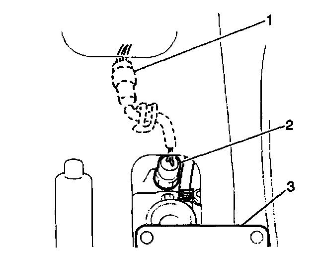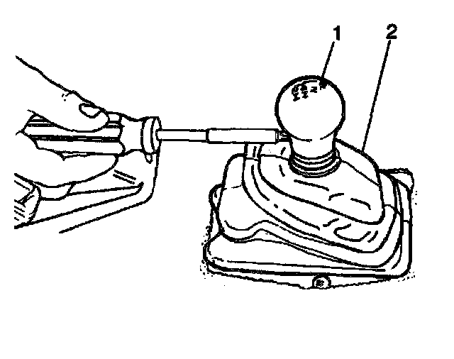 7. Remove the gearshift control lever (1) from the gearshift lever case (2) by pushing down on the gearshift control lever pivot (3) and turning counterclockwise 90 degrees, 1/4 turn, and lifting up.