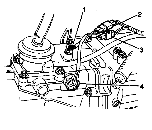 9. Remove the four-wheel drive low switch electrical connector (3) from the four-wheel drive low switch (4), if equipped.