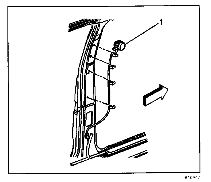 2. Install the inside air temperature sensor assembly (1) to the B pillar.