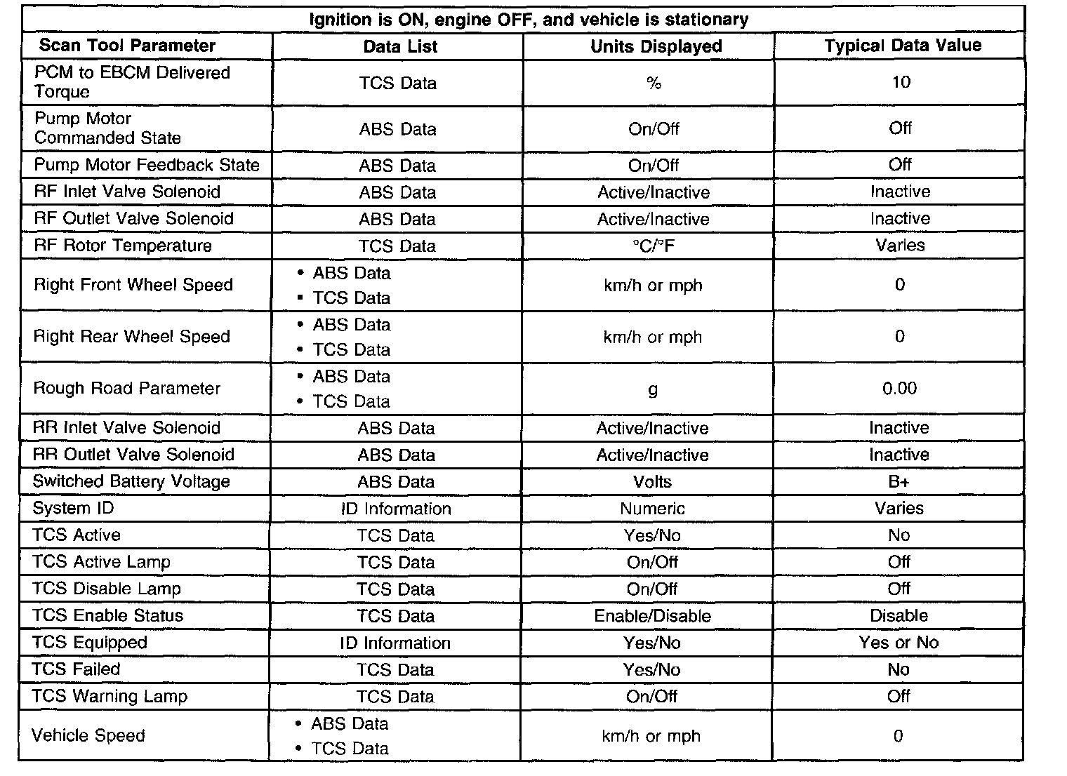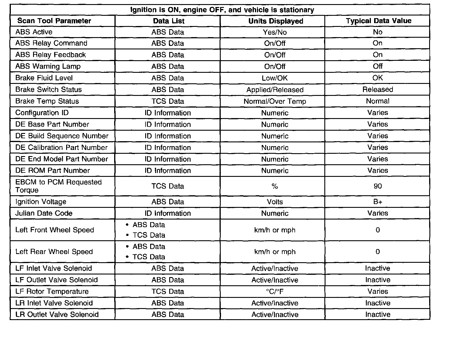 Scan Tool Data List