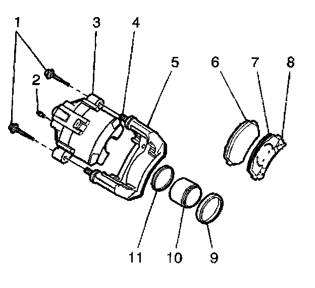 3. Install the disc brake pads (6) and (8) to the disc brake caliper bracket.