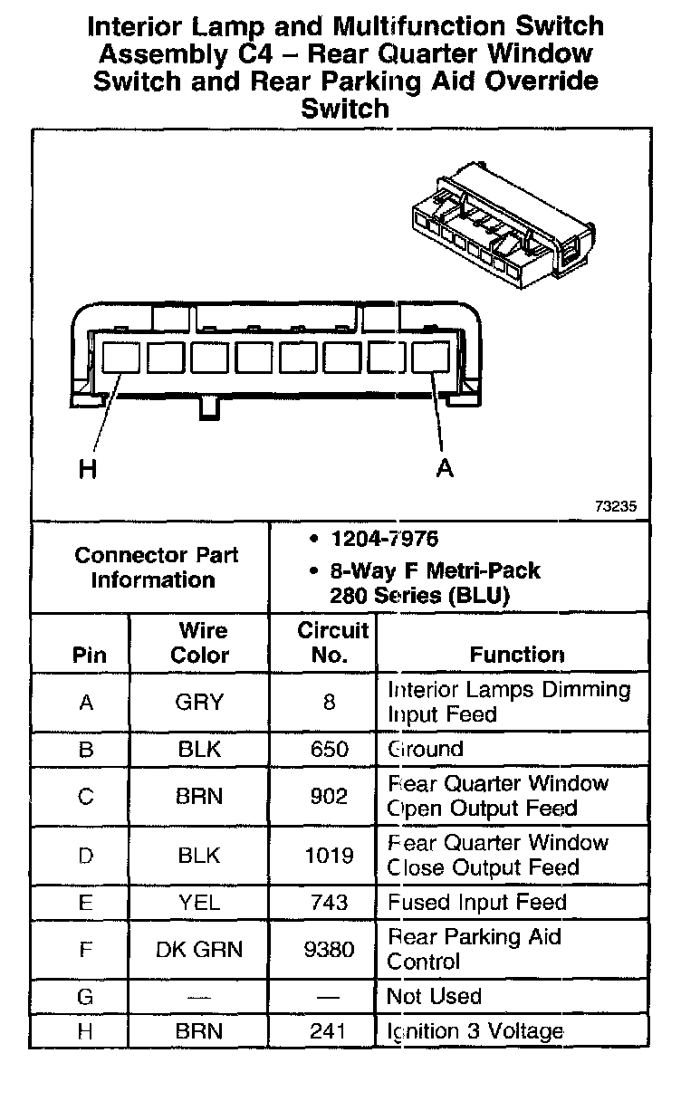 Interior Lamp And Multifunction Switch Assembly C4 - Rear Quarter Window Switch And Rear Parking Aid Override Switch: