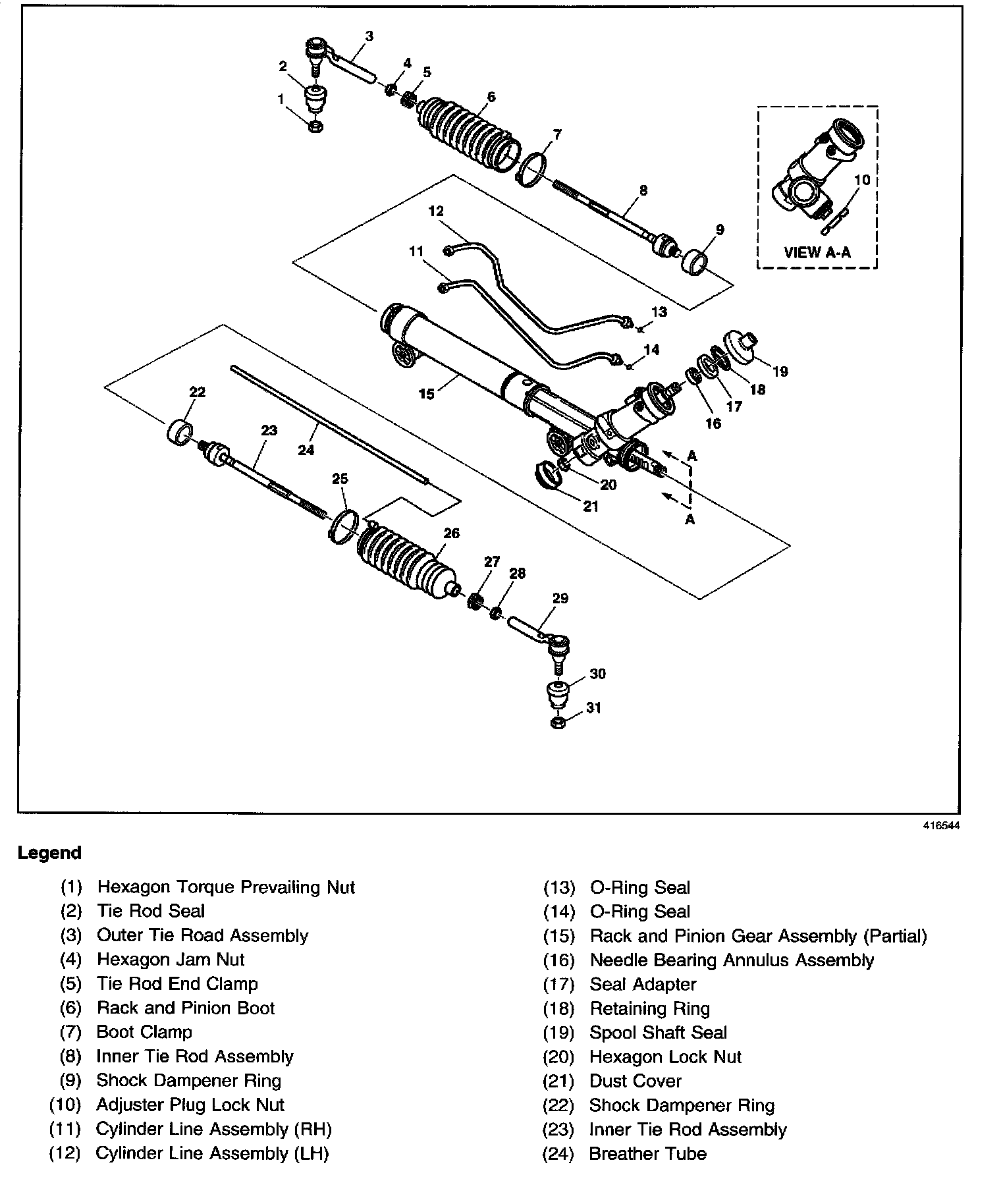 Power Steering Gear Disassembled View (Rack and Pinion)