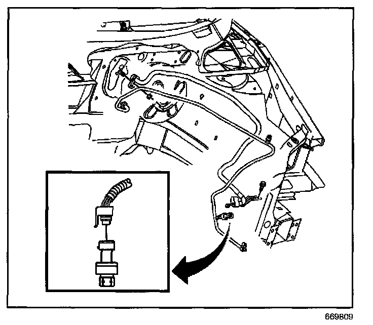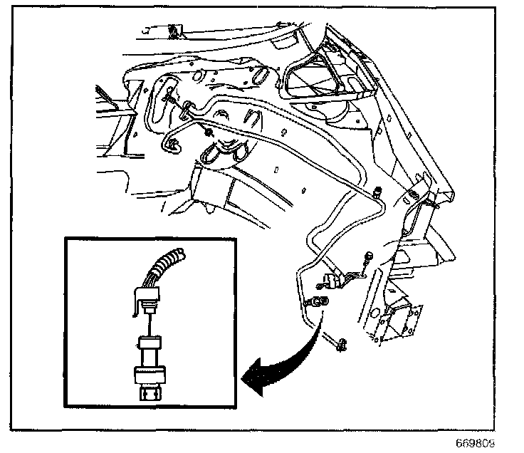 5. Remove the A/C refrigerant pressure sensor from the evaporator inlet tube.