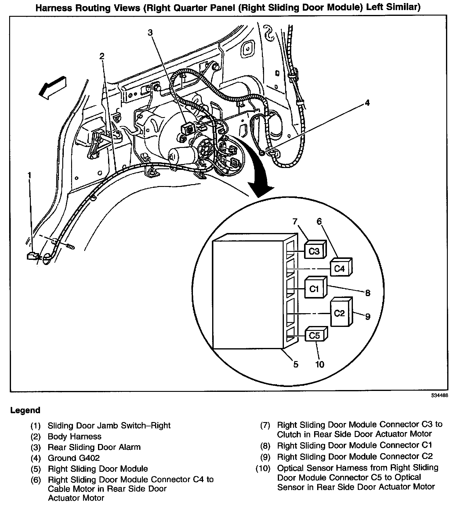 Harness Routing Views (Right Quarter Panel (Right Sliding Door Module) Left Similar):