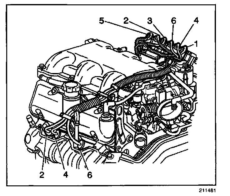 2. Remove the spark plug wires (2, 4, 6) from the front bank spark plugs.