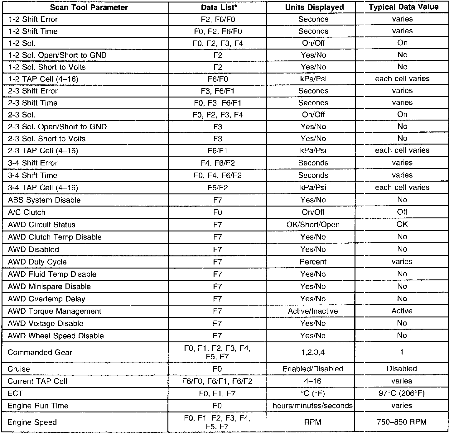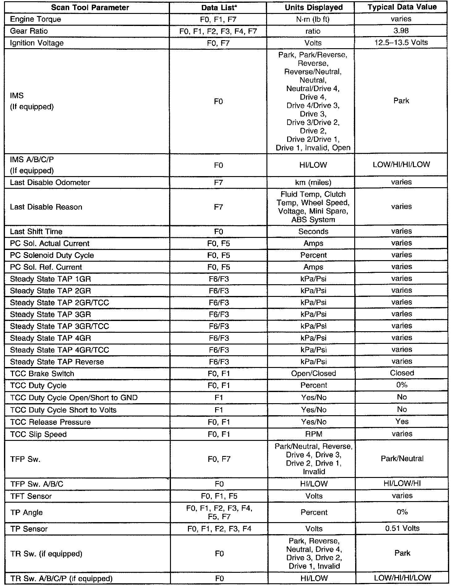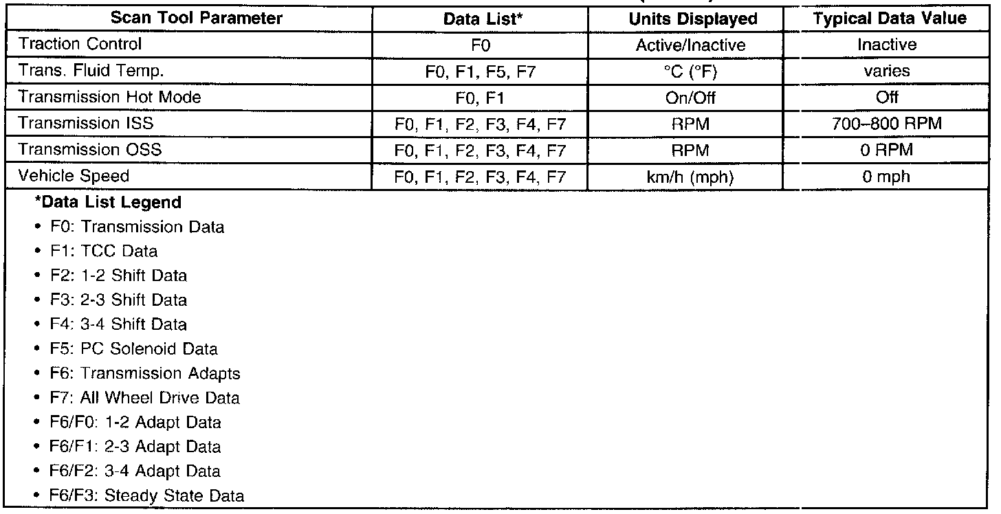 Transmission Scan Tool Data List