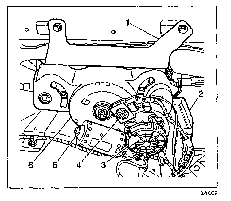 1. Push the PSD actuator control module (2) outboard in order to unhook the control module from the actuator motor.