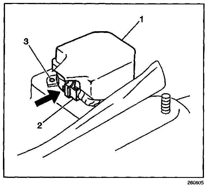 5. Disconnect the SDM wiring harness connector (3) from the SDM (1).