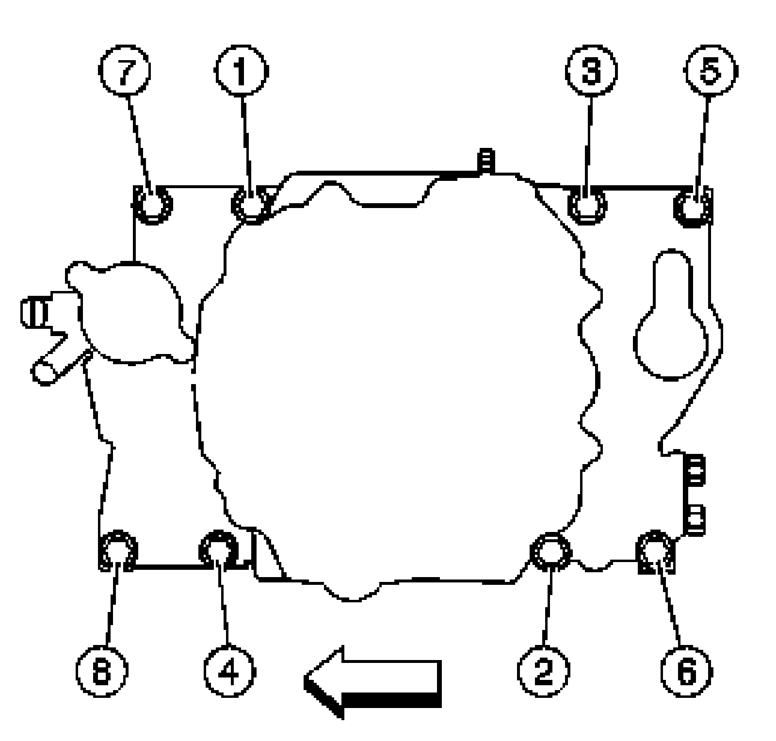 3. Tighten the bolts on the final pass in sequence (1-8) to 15 Nm (11 lb.ft.).