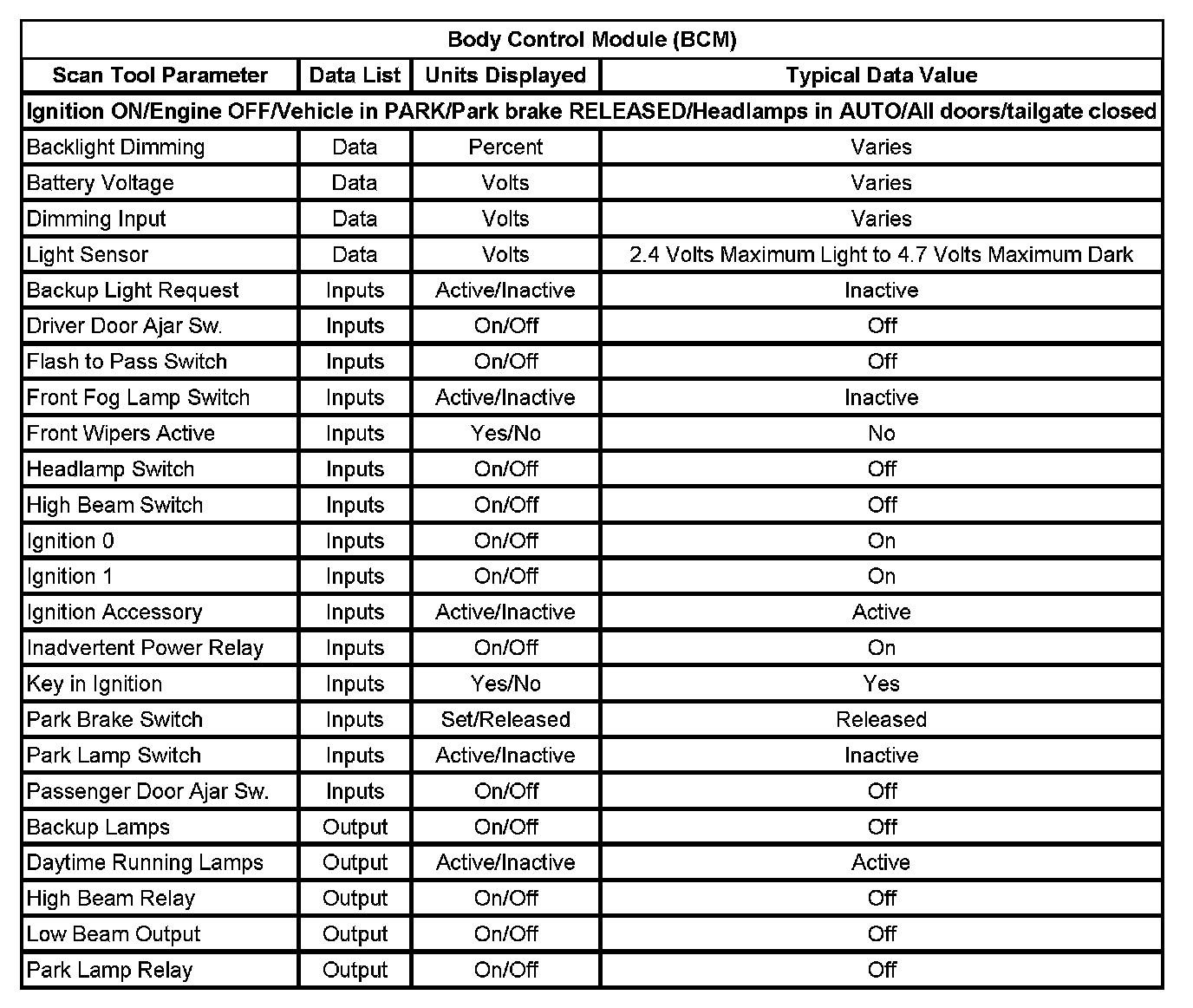 Body Control Module (BCM):