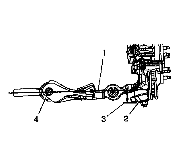3. Measure from the centerline (1) of the lower control arm bushing bolt (4) down to the machined edge of the steering knuckle (2) in order to obtain Z height measurement (3).