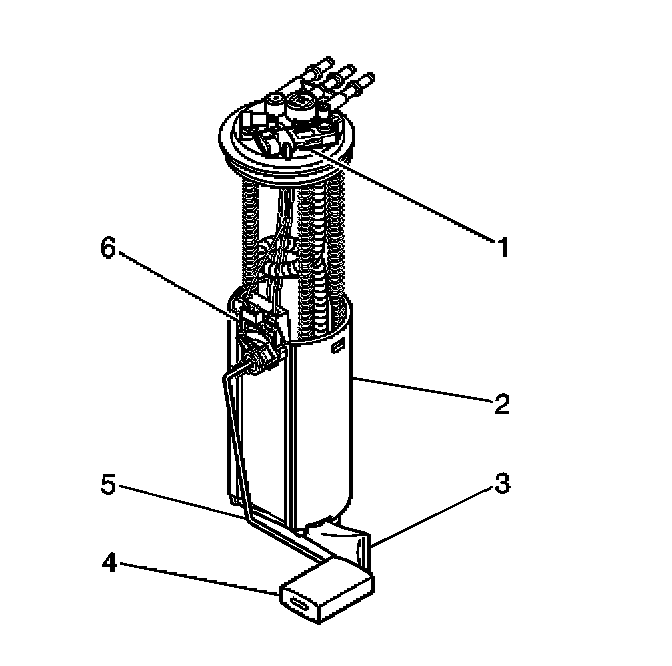 The fuel level sensor consists of a float, a wire float arm, and a ceramic resistor cord. The position of the float arm indicates the fuel level. The fuel level sensor contains a variable resistor, which changes resistance in correspondence to the amount of fuel in the fuel tank. The powertrain control module (PCM) sends the fuel level information via the class 2 circuit to the instrument panel (I/P) cluster. This information is used for the I/P fuel gage and the low fuel warning indicator, if applicable. The PCM also monitors the fuel level input for various diagnostics.