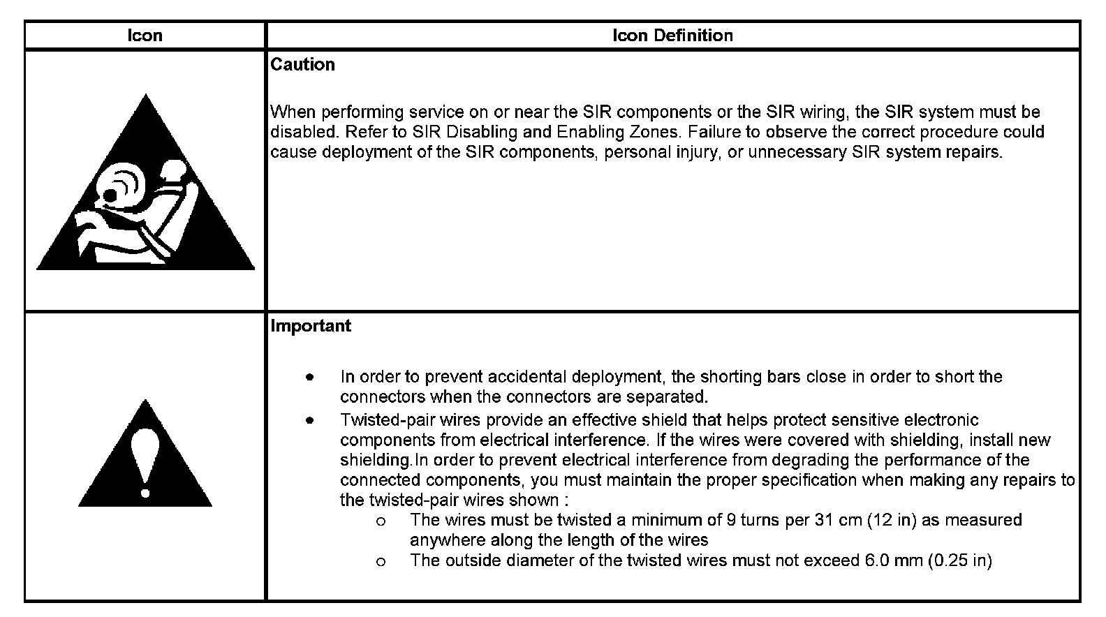 Air Bag Systems Schematic Icons