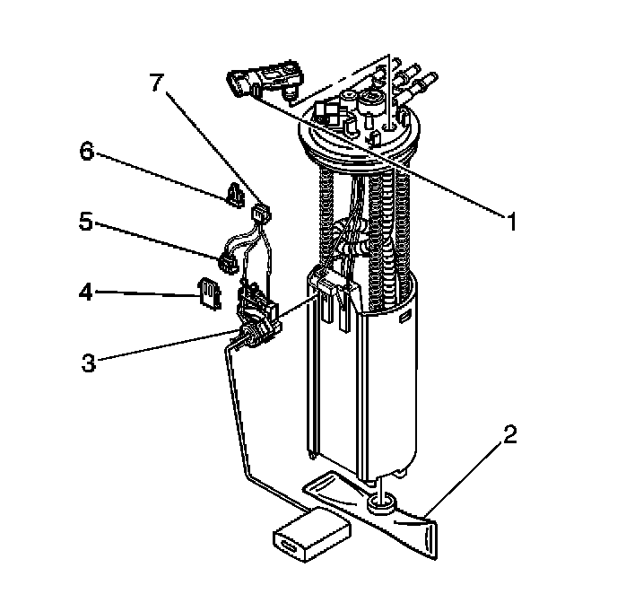 6. Squeeze the locking tangs and remove the fuel level sensor (3).