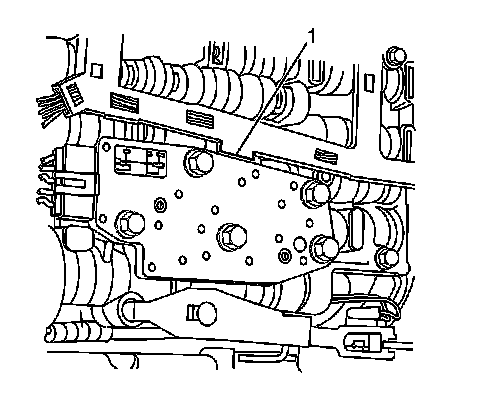 9. Remove the TCC PWM solenoid (1) in order to access the TCC solenoid retaining bolts.
