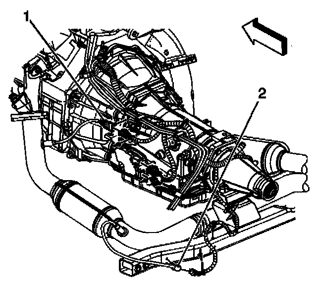 8. Disconnect the oxygen sensor electrical connectors (1, 2).