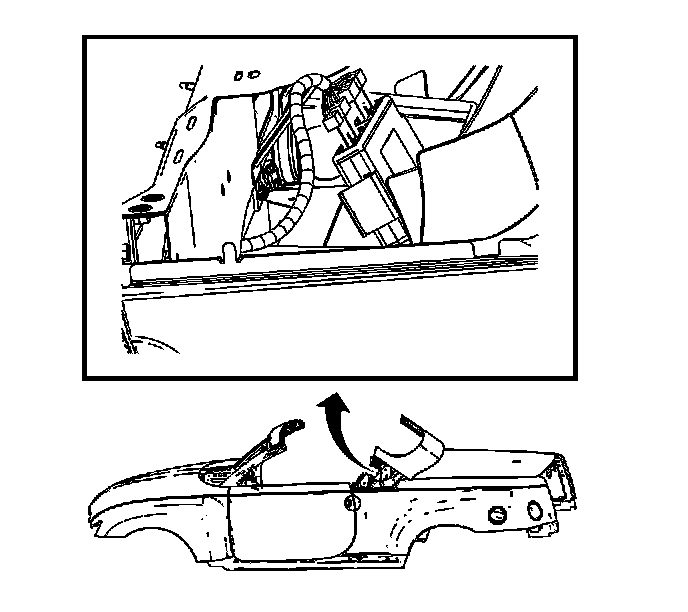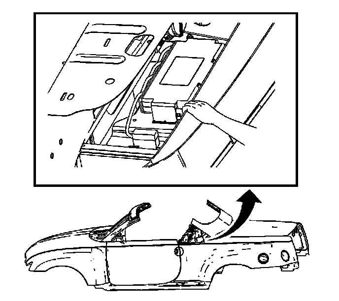 3. Push down firmly on the control module to seat the folding top control module clip into the body rear compartment.