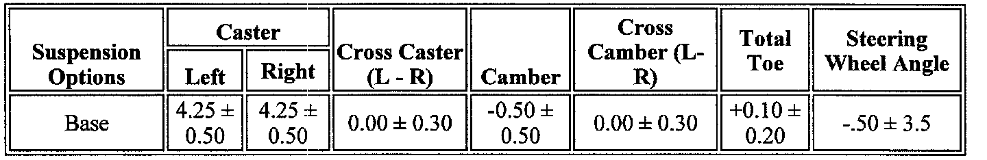 Wheel Alignment Specifications