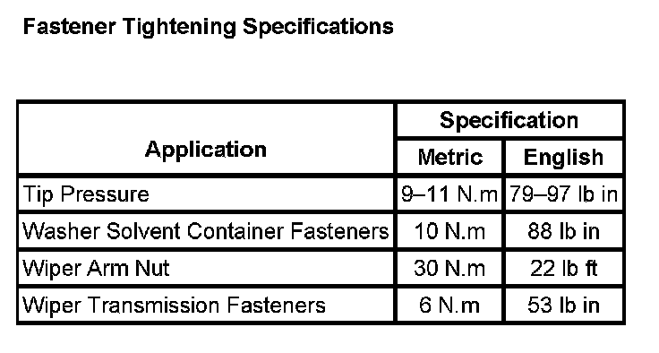 Wiper and Washer Systems: Specifications