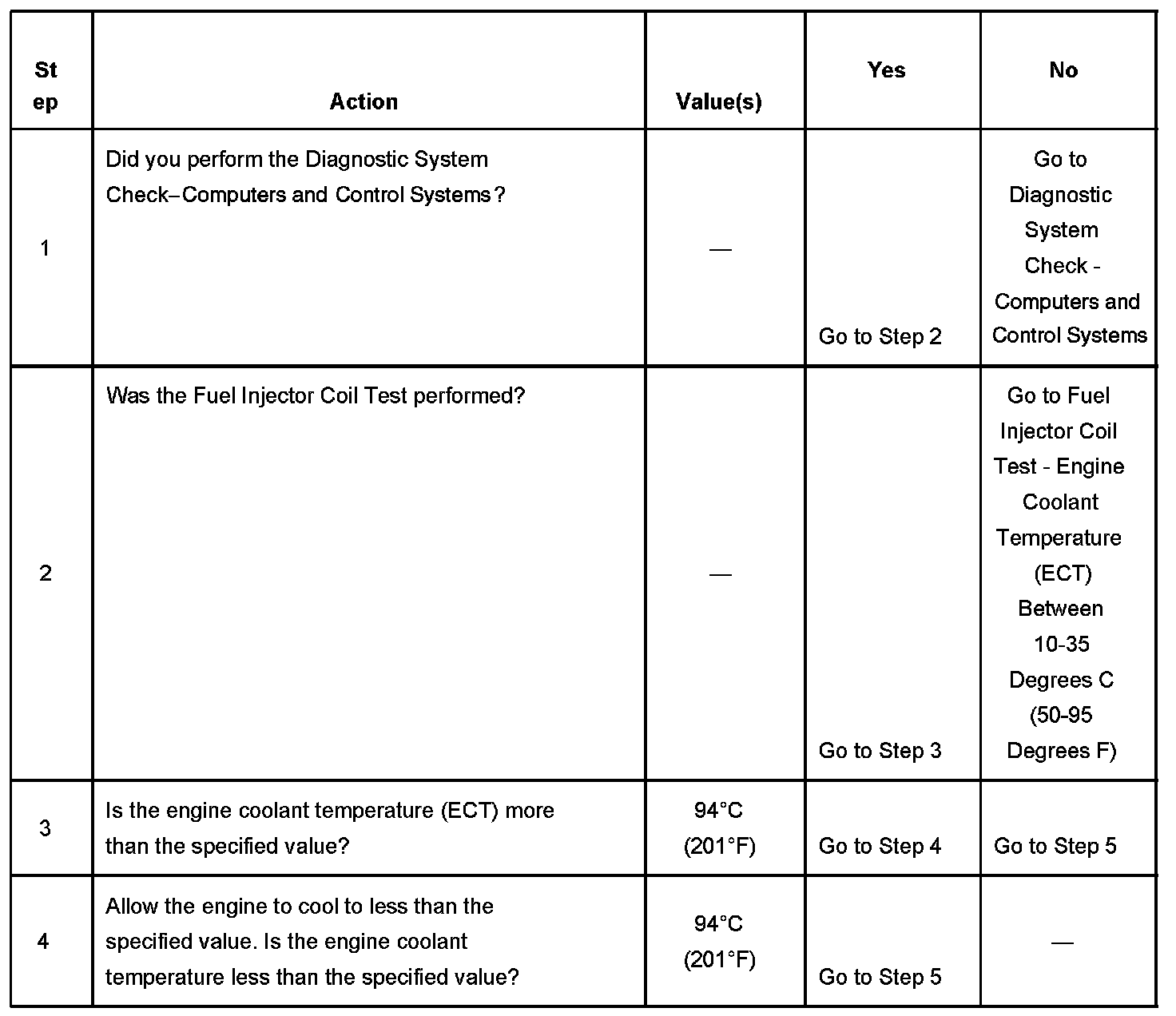 4. The engine coolant temperature must be less than the operating temperature in order to avoid irregular fuel pressure readings due to hot soak fuel boiling.