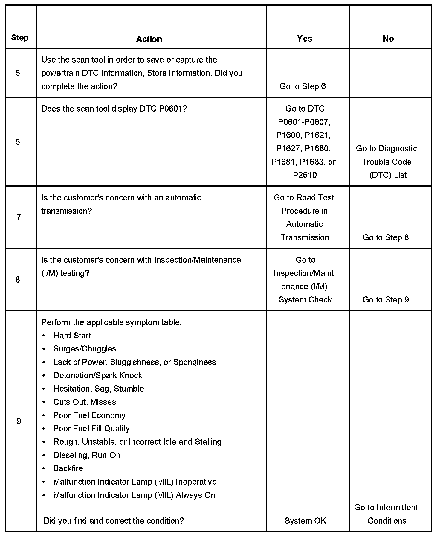 6. A DTC P0601 that is stored must be diagnosed first. If multiple powertrain DTCs are stored, diagnose in the following order of priority: