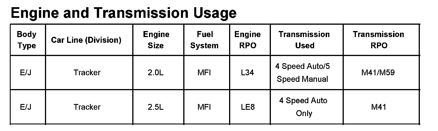 Tracker 4WD L4-2.0L VIN C