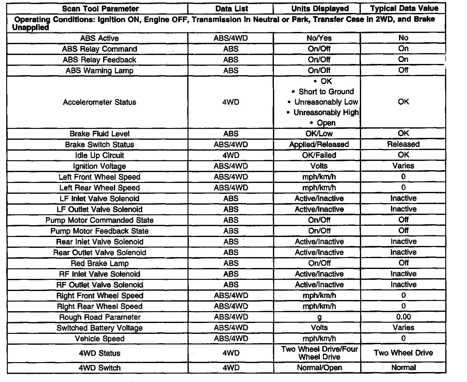 Scan Tool Data List