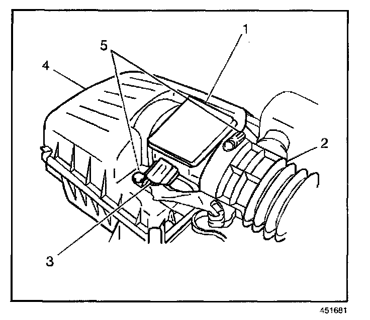 1. Install the MAF sensor (1) into the air filter housing (4).