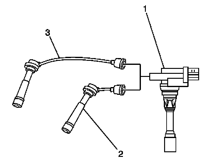 1. Install the 1 cylinder spark plug wire (3) to the ignition coil (1) or the 2 cylinder spark plug wire (2) to the ignition coil (1).