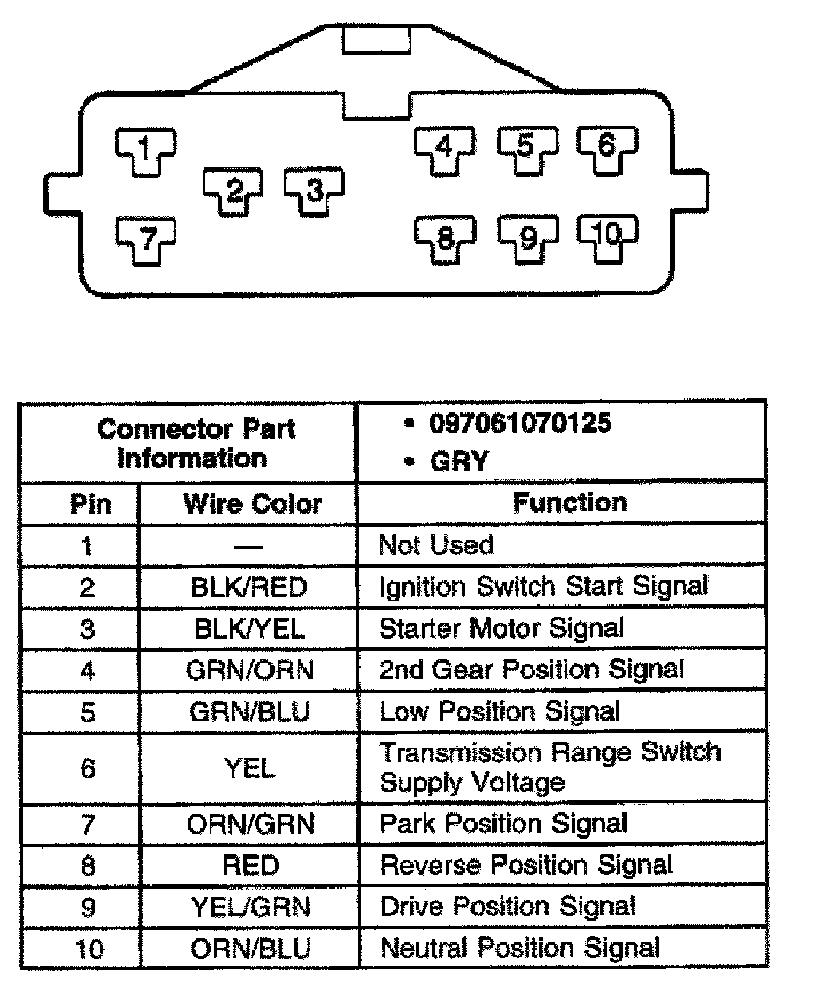 Transmission Range Switch Connector