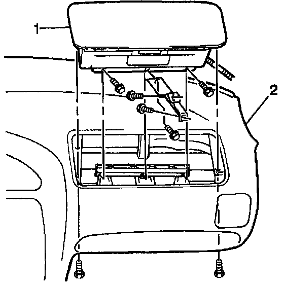 4. Remove the inflatable restraint I/P module from the vehicle's instrument panel (2).