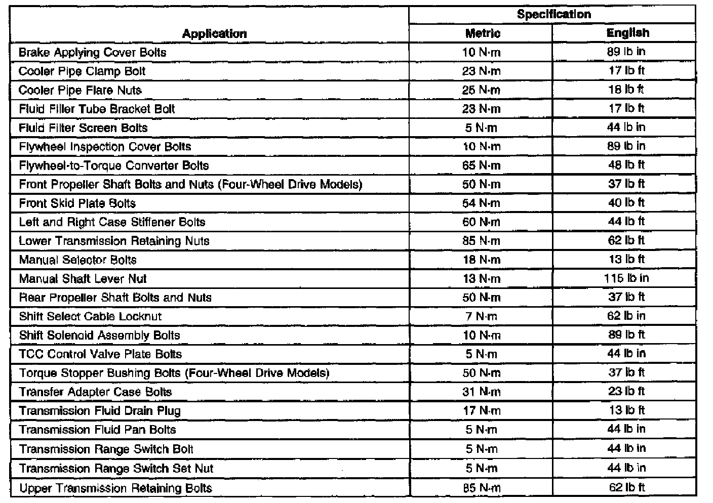 Fastener Tightening Specifications