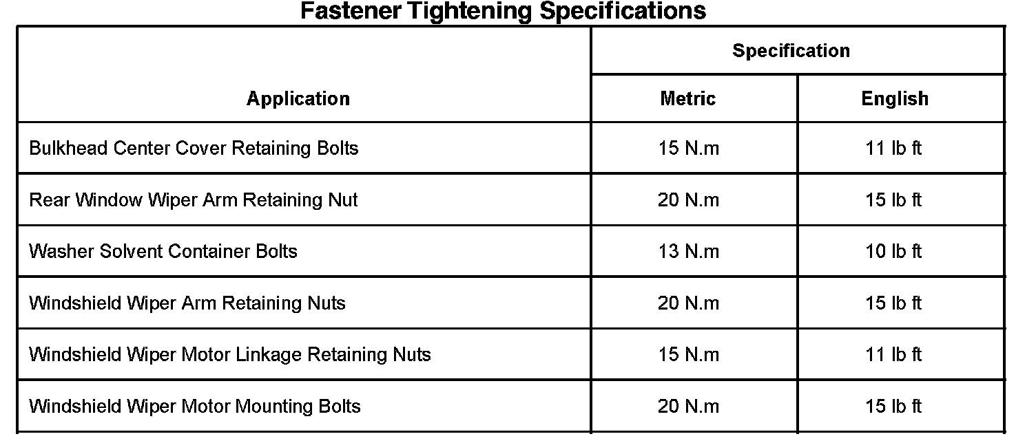 Wiper and Washer Systems: Specifications