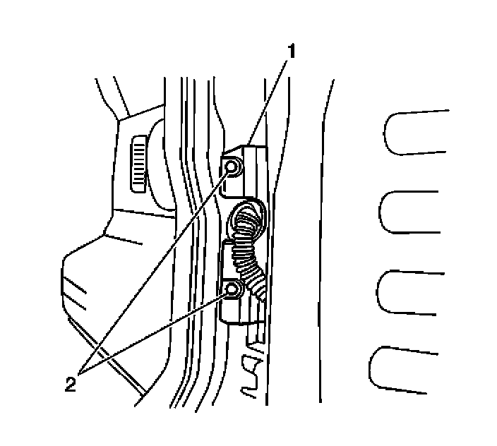 8. Install the tail lamp (1) to the vehicle. Secure the tail lamp with the 2 screws (2).