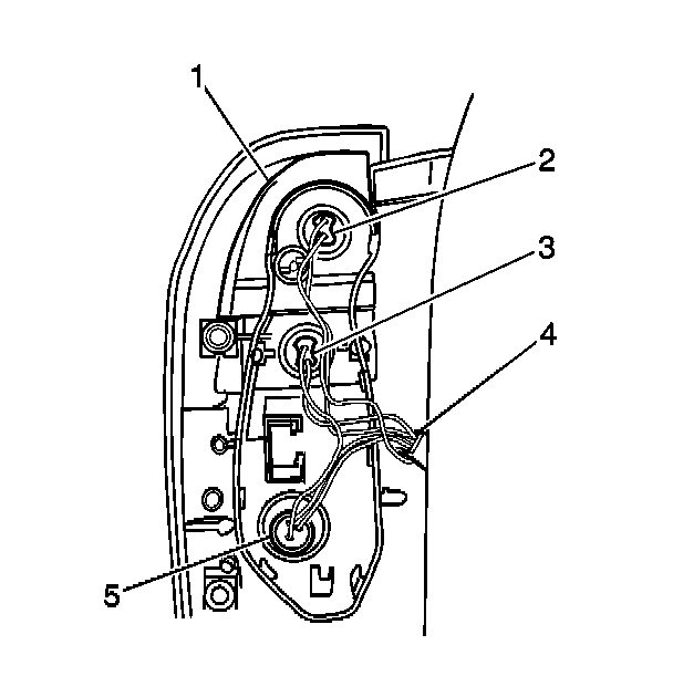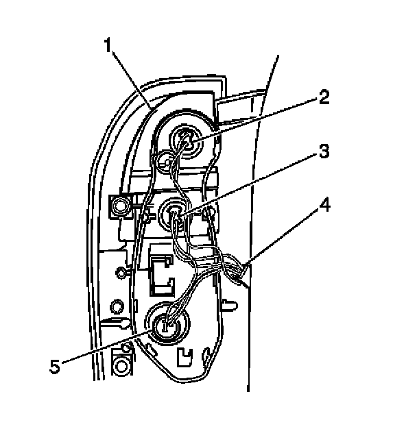 2. Pull the tail lamp (1) rearward in order to access the turn signal, the backup and the tail/stop lamp bulb sockets.