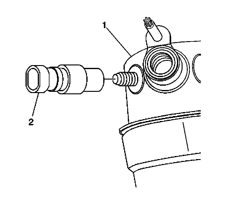 2. Remove the A/C low pressure switch (2) from the accumulator (1).