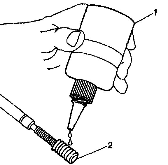 9. Lubricate the threads of the installer tool (2) with the driver oil (1).