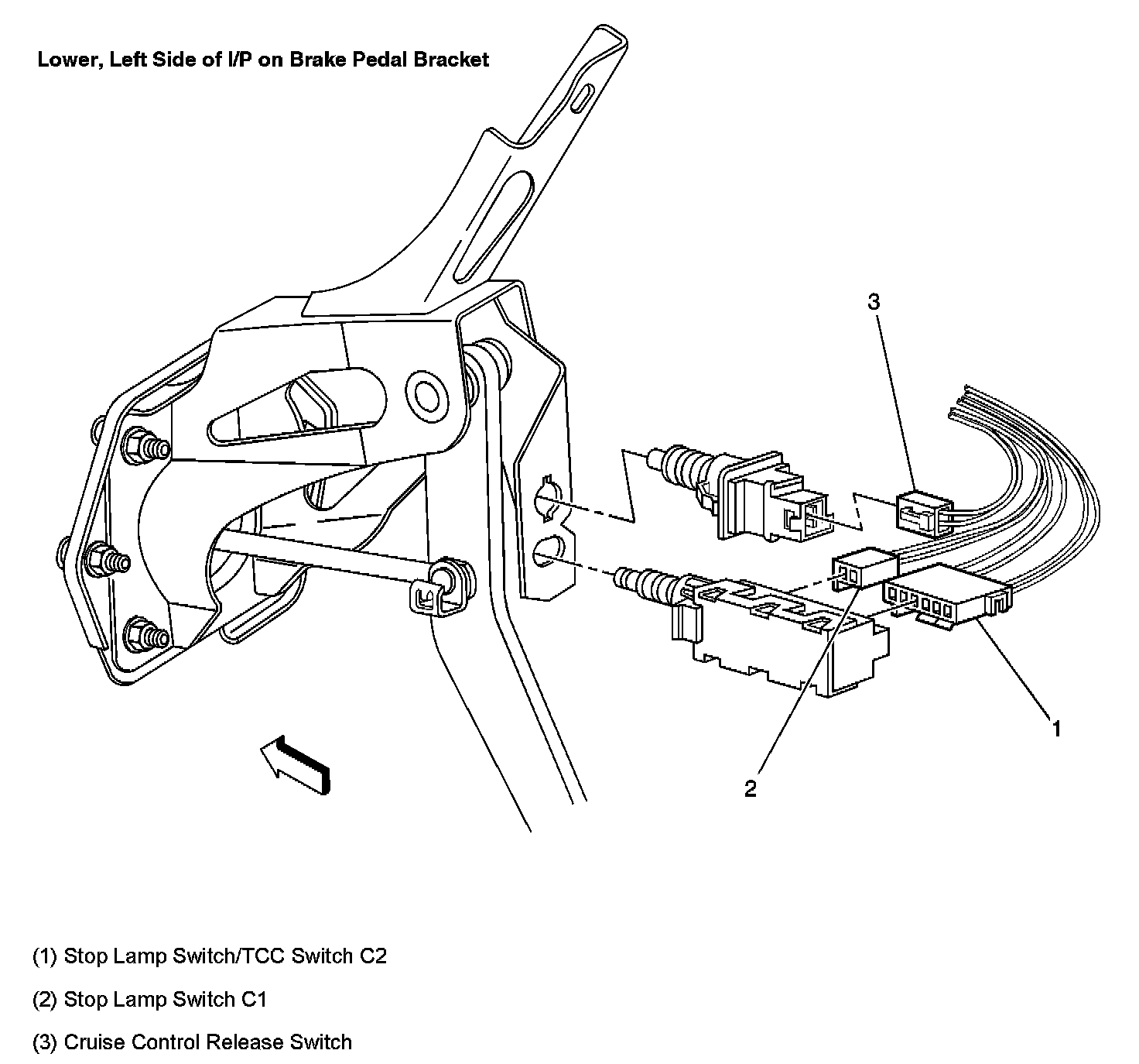 Lower, Left Side Of I/P On Brake Pedal Bracket: