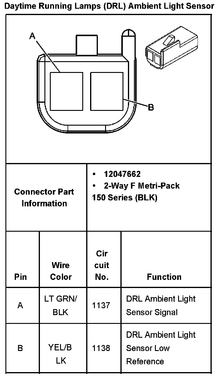 Daytime Running Lamps (DRL) Ambient Light Sensor: