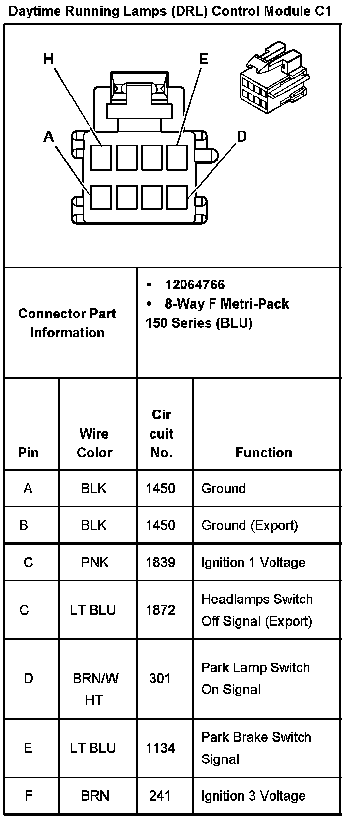 Daytime Running Lamps (DRL) Control Module C1 Part 1: