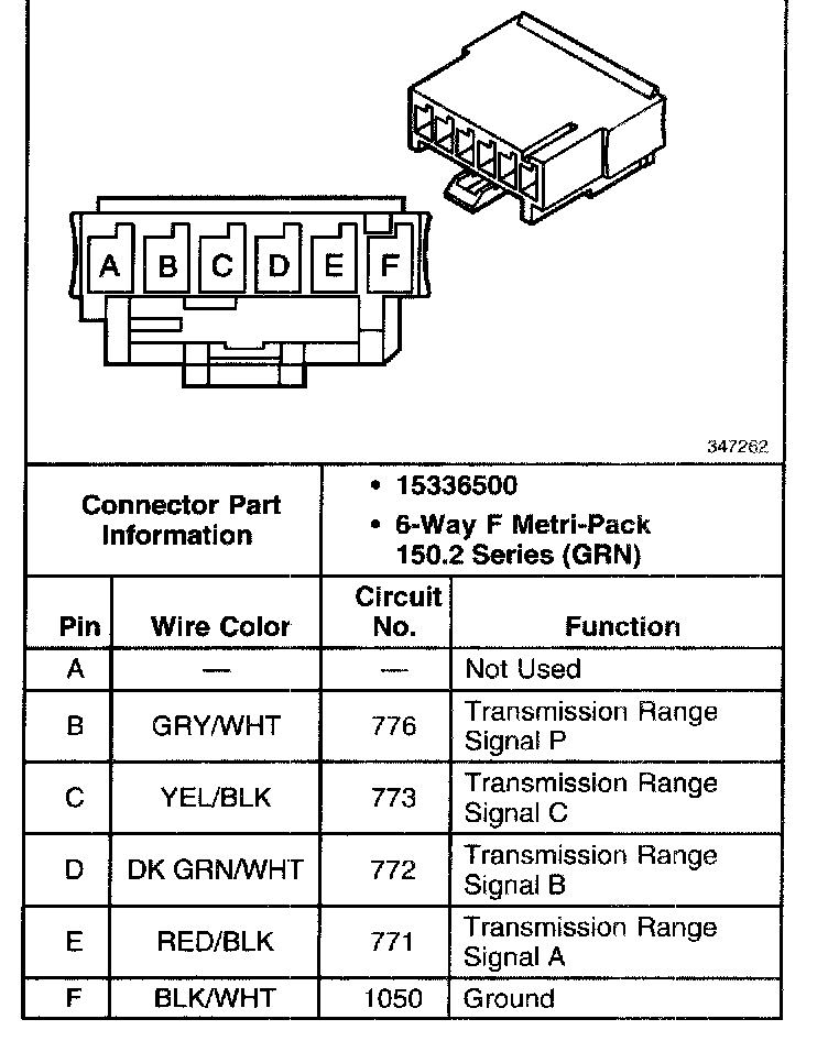 Transmission Internal Mode Switch Connector, Wiring Harness Side: