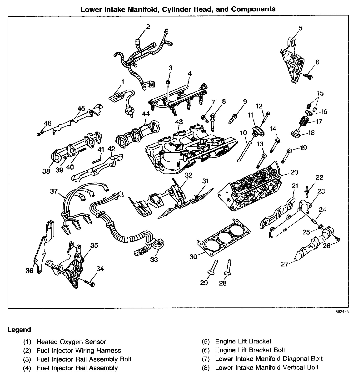 Lower Intake Manifold, Cylinder Head, and Components