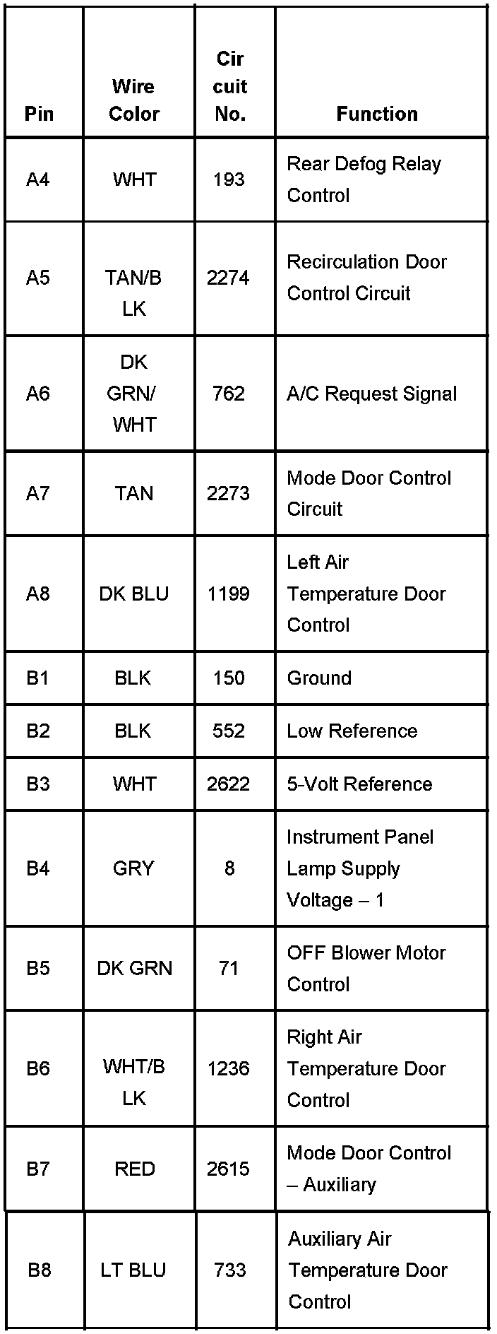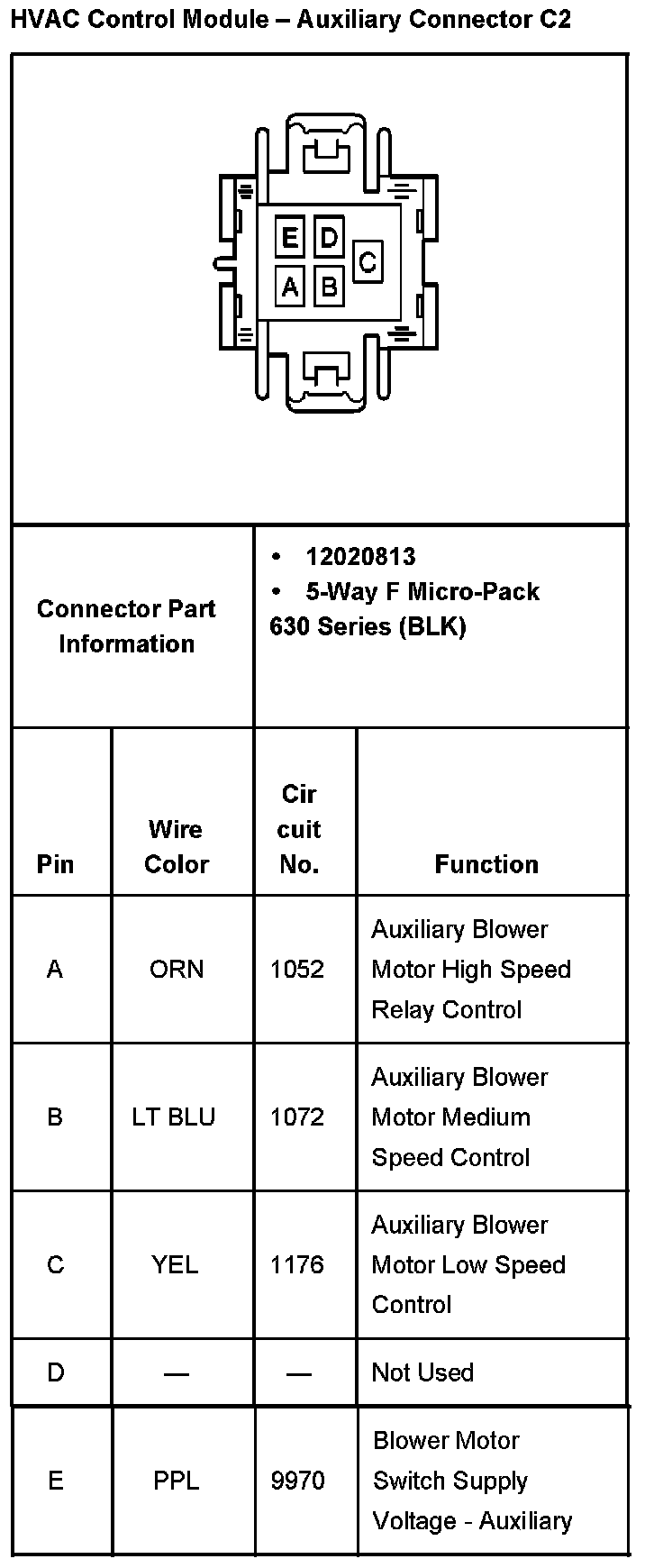 HVAC Control Module - Auxiliary Connector C1 Part 2: