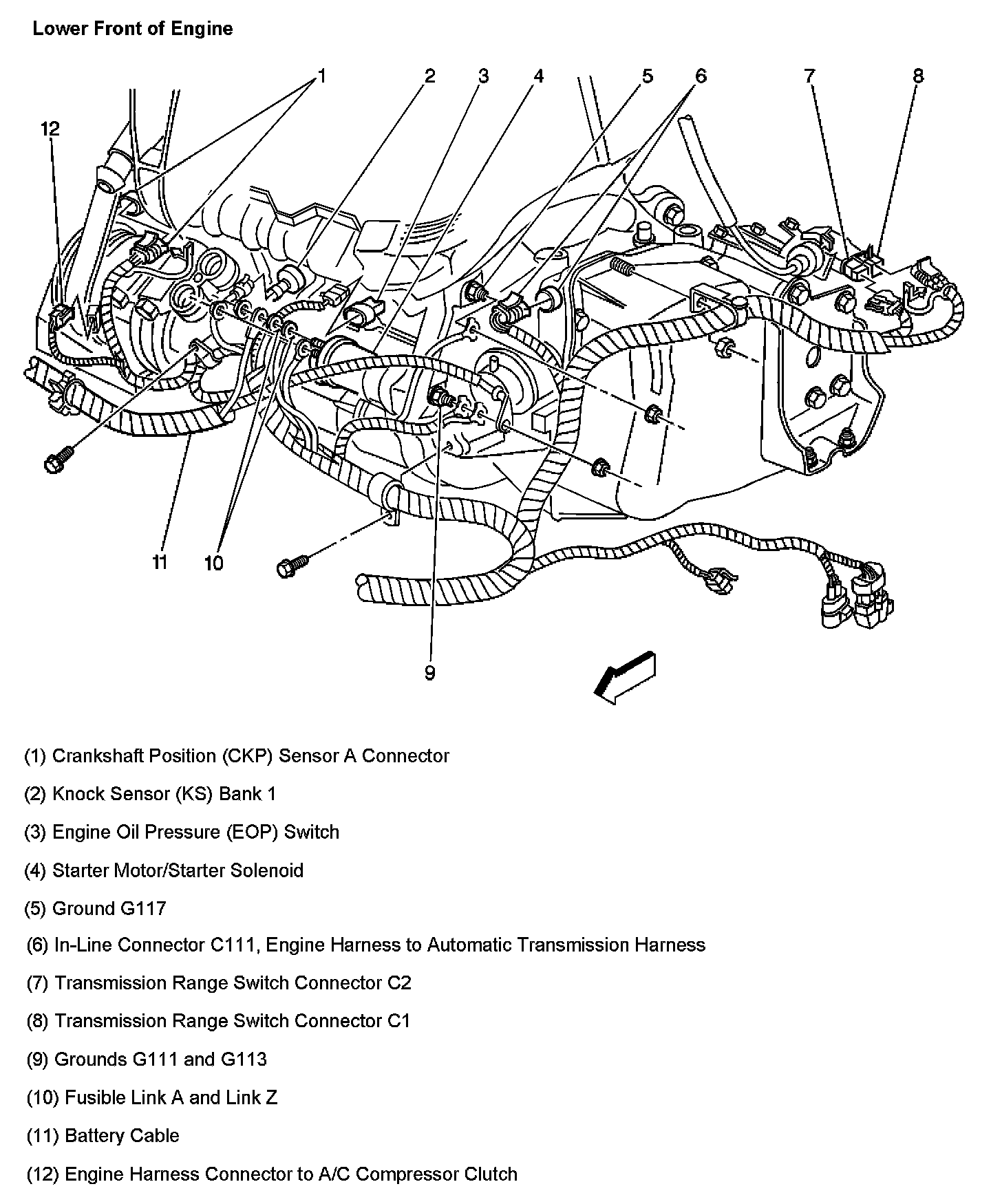 Starter Solenoid, Transmission Range Switch, A/C Compressor And CKP A Connectors: