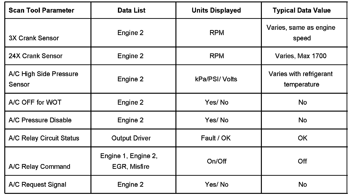 Scan Tool Data List - Powertrain System