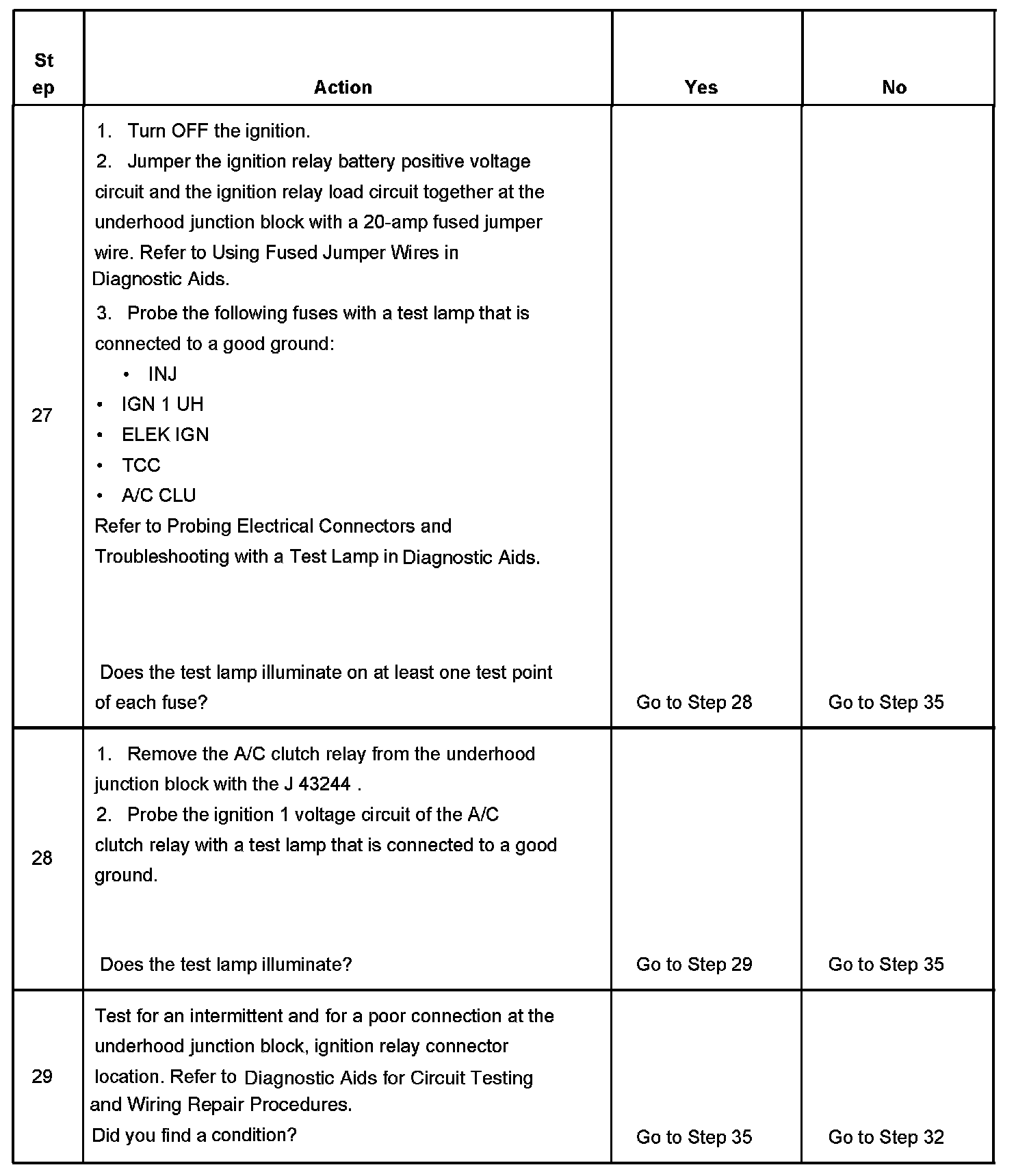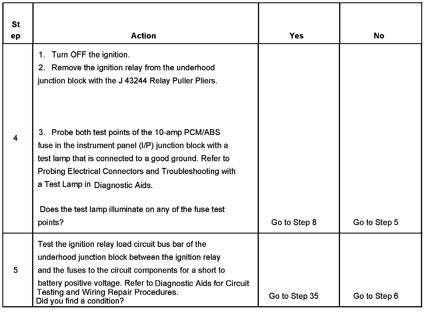 The ignition relay table assumes that the vehicle battery is fully charged. Refer to Battery Inspection/Test in Starting and Charging. Battery Inspection/Test
