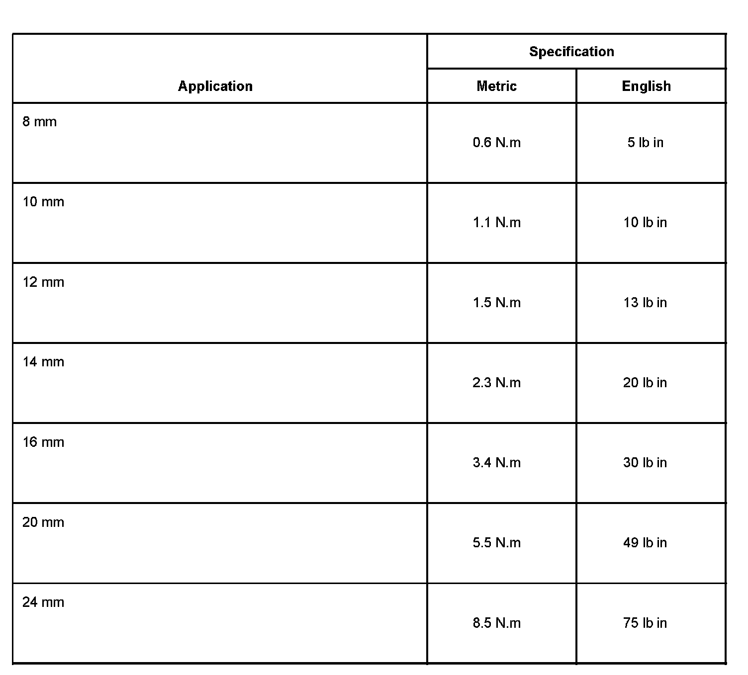The metric fasteners on GM products are designed to new, international standards. The following are the common sizes and pitches, except for special applications: