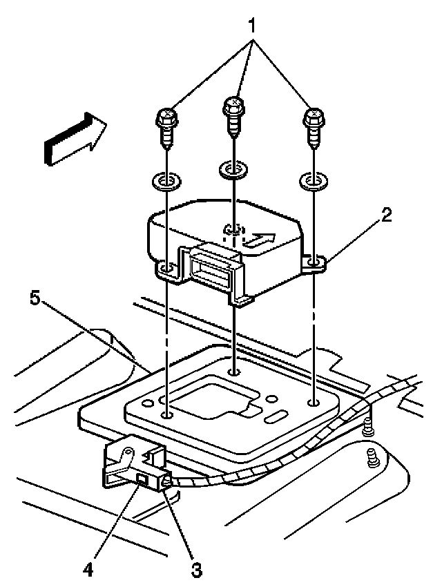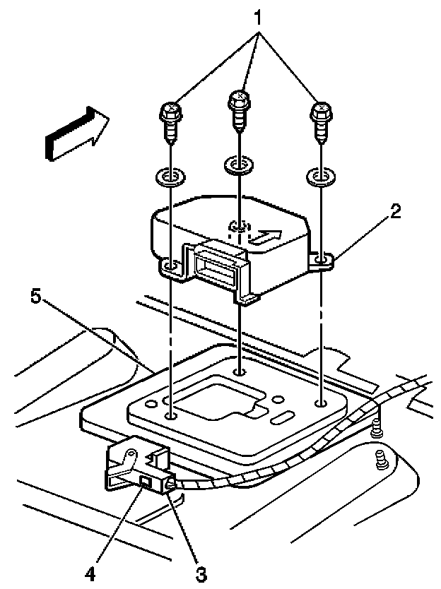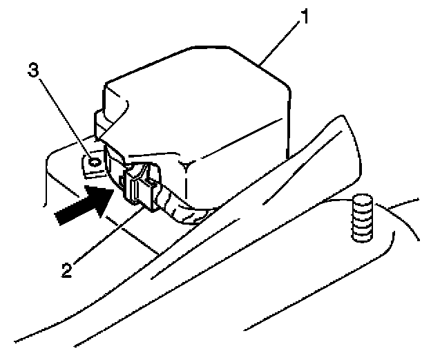 5. Disconnect the SDM wiring harness connector (3) from the SDM (1).