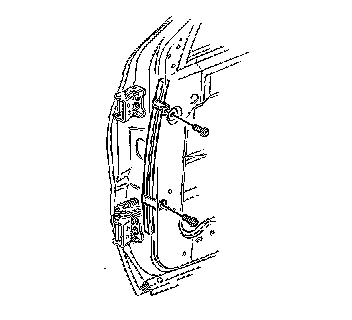 1. Remove the front door water deflector. Refer to Water Deflector Replacement - Front Door Service and Repair.